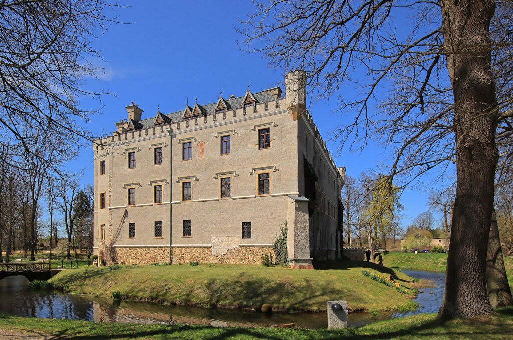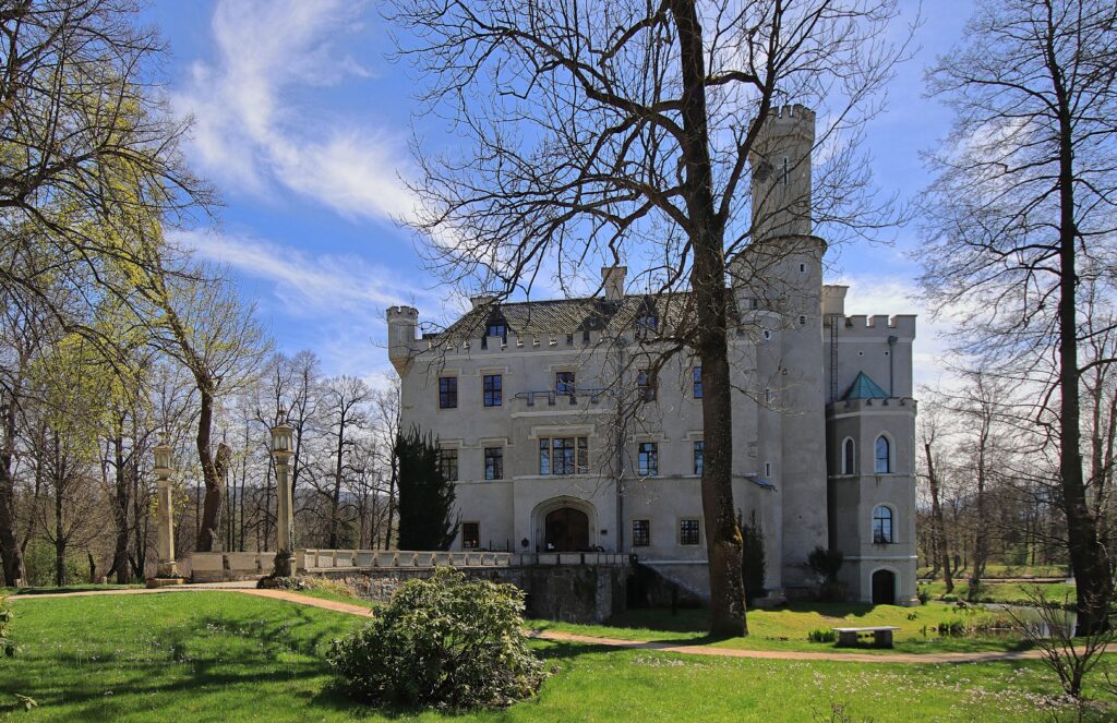 Am linken Ufer des Bober im Hirschbergertal . Ein im Krieg zerstörtes Schloss im Neorenaissance Stil dessen Ursprünge in die Mitte des 15. Jahrhunderts zurückgehen.Eine Sanierung/Restaurierung wurde wohl mehrfach begonnen…