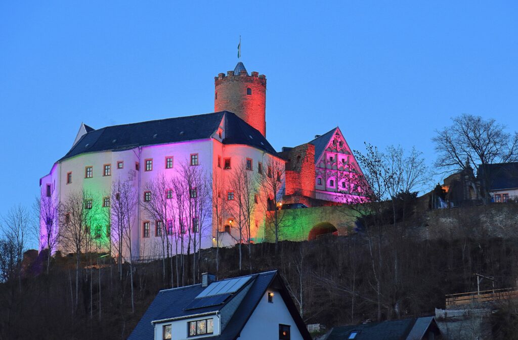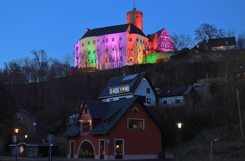 Polarzauber – eine Lichtinstallation in und an der Burg Scharfenstein im Zschopautal