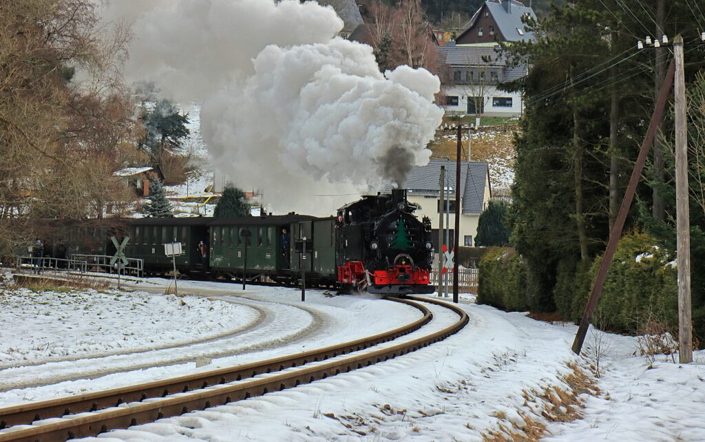 Winterdampf im Preßnitztal. Die Museumsbahn zwischen Forellenhof und Schmalzgrube