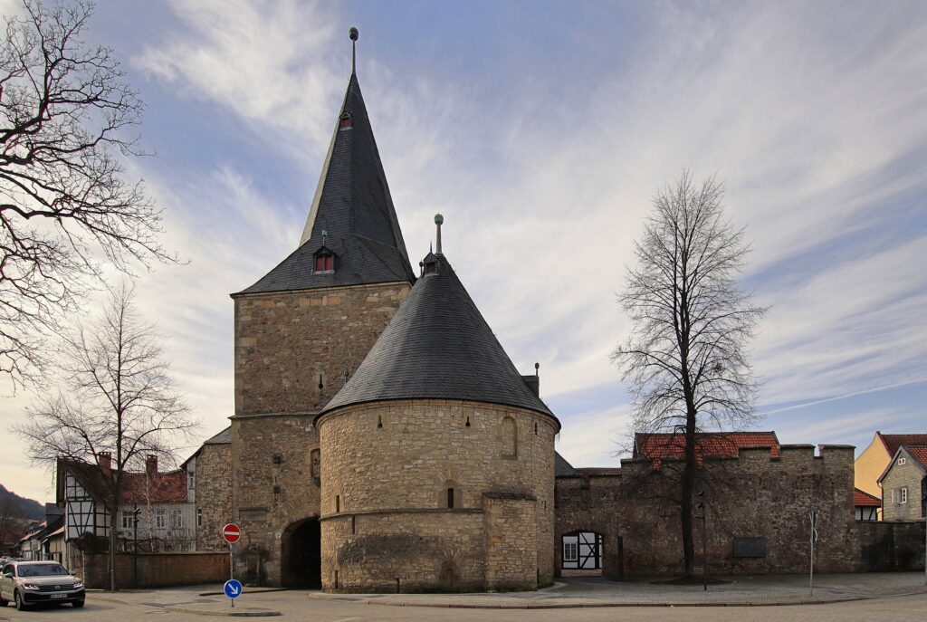 Eines der vielen Wahrzeichen der Welterbestadt Goslar, das Breite Tor mit den markanten Türmen, eine Zufahrt in die Altstadt